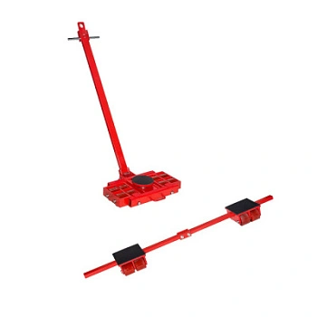 Комплект такелажных платформ X4 и Y4 рассчитан на перемещение различных грузов и оборудования весом до 8т. Система для перемещения груза X4 и Y4 представляют собой стальную комплексную конструкцию, состоящую из двух частей:1. Ведущая опора X4 снабжена ручкой для перемещения опоры и поворотным диском для маневрирования. 2. Ведомая опора Y4. состоит из двух неуправляемых такелажных платформ. Имеет регулируемую по длине до 1,3м штангу. В зависимости от габаритов перевозимого груза, можно сближать и удалять друг от друга роликовые платформы. В зависимости от веса груза, перемещение может осуществляться такелажными системами с одним или двумя ведущими катками. Два ведущих катка применяют для балансирования и безопасного перемещения больших по размерам и сверхтяжелых грузов. Количество роликов Х4-4шт., материал роликов - полиуретан, размер платформы Х8-560х420х110мм., диаметр поворотного диска 160мм., длина рукоятки 1100мм.; количество роликов Y4-2х2шт., материал роликов-полиуретан, размер платформы 200х200х110мм., длина штанги 1300мм.Вес комплекта 28 кг.