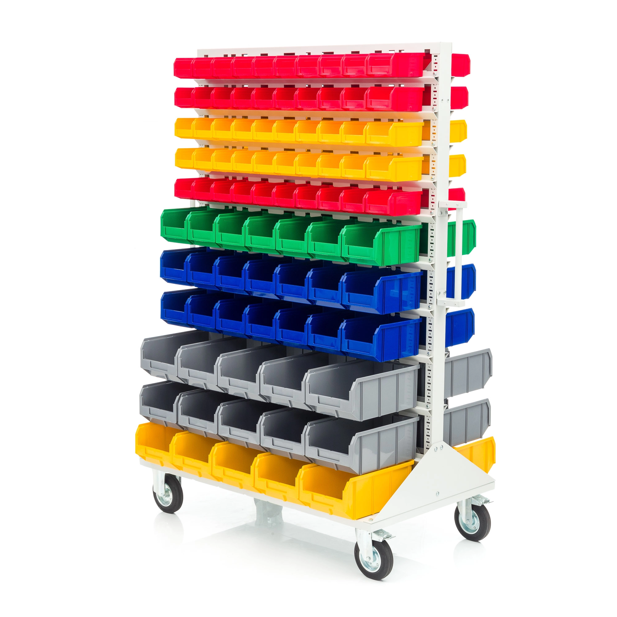 Платформа мобильная Стелла-техник V 700х1150+2 ручки. Серия К служит основанием для мобильных, передвижных двусторонних стоек V 1150х1515мм. и V 1150х2020мм. под пластиковые ящики серии V-1, V-2 и V-3. Платформа мобильная Стелла-техник V 700х1150 изготовлена из металла. Покрытие полимерное. Цвет серый. Платформа устанавливается на колеса, и стойка закрепляется на передвижной платформе. В нижней части платформы имеются места под точки крепления колес 80х60мм. В комплекте с платформой поставляются 2 ручки. Ручки служат для удобства управления конструкцией при движении. Колеса подбираются отдельно, в зависимости от грузоподъемности. В комплект поставки колеса не входят.
