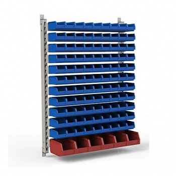 Стеллаж разработан специально для систематизации, хранения различных комплектующих, деталей, запчастей, крепежных и строительных материалов: болты, гайки, сверла, подшипники, метизы, фитинги, сантехника, зажимы, заклепки и т.д.